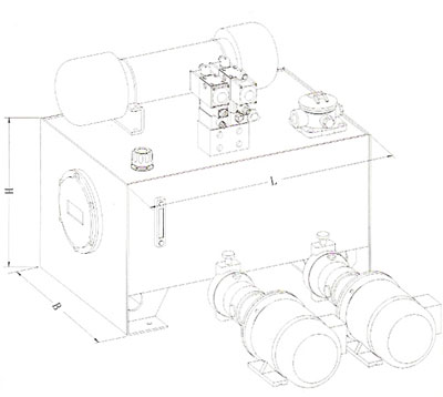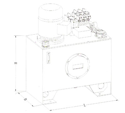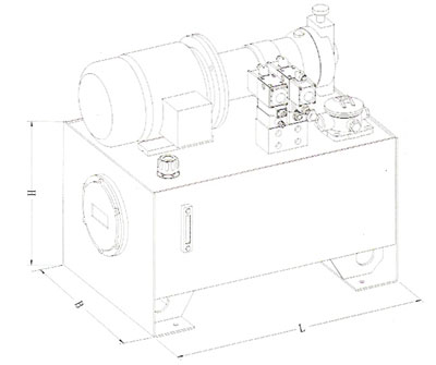 油箱總高度尺寸按集成塊多少而定,占地按電機一泵裝置大小而定。